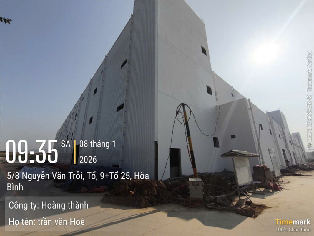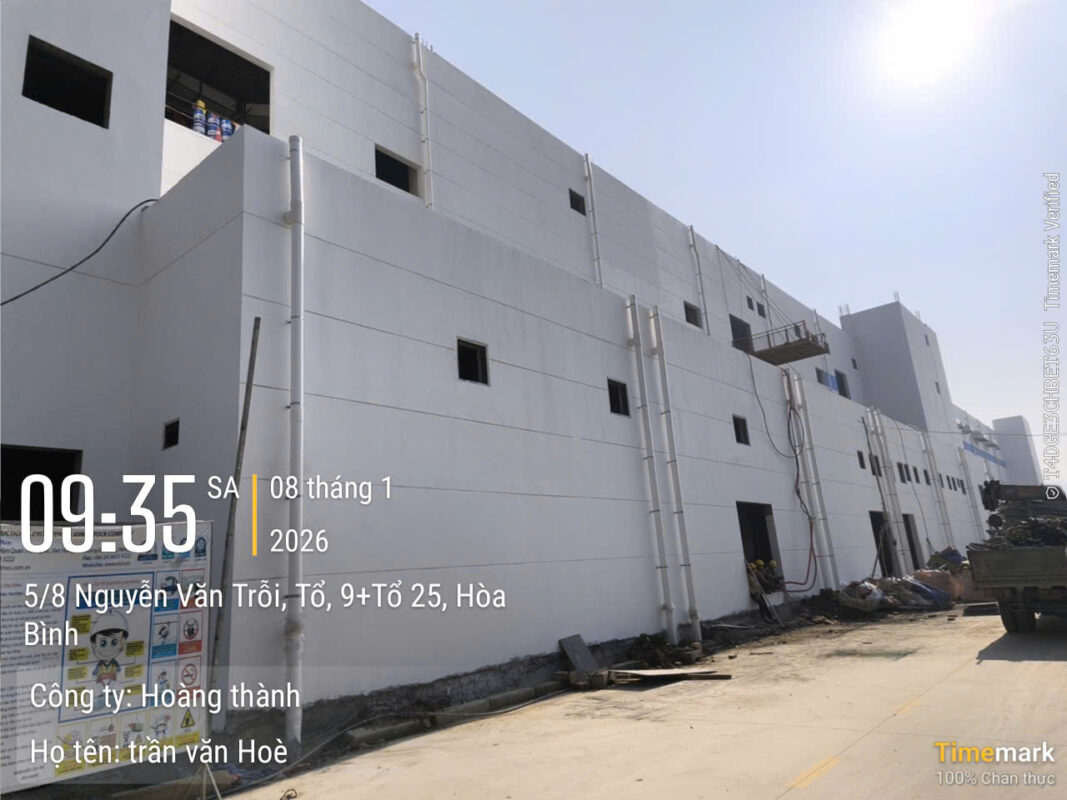 Công trình nhà mày Meiko Hòa Bình giai đoạn 2 do nhà thầu Hoàng Thành thi công hiện đang bước vào giai đoạn hoàn thiện, các hạng mục chính đã được triển khai đúng tiến độ và đảm bảo chất lượng theo kế hoạch.