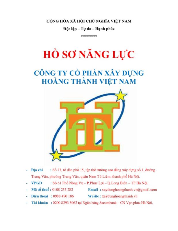 Xây Dựng Hoàng Thành luôn lấy sự hài lòng của khách hàng làm nền tảng cho sự phát triển của công ty. Do đó, chúng tôi cam kết sẽ mang đến những công trình chất lượng, đúng tiến độ với chi phí tối ưu nhất cho Quý khách hàng của mình. Hotline: 0988.490.186